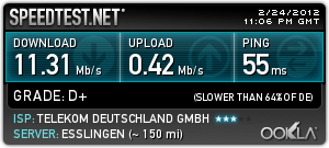 Am 22.02.12 Nachts um 22:30 Uhr dann der Dampfhammer mit 4595 DL und 221 UL Ping 93 ms