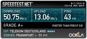 Das klingt doch recht gut. Die Werte erreiche ich bei weitem nicht. Bin ja auch recht weit weg vom Sendemasten.
